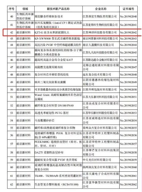 江苏坤泽科技股份有限公司凭借着新材料KZT-G高含水率淤泥固化土成功入围。